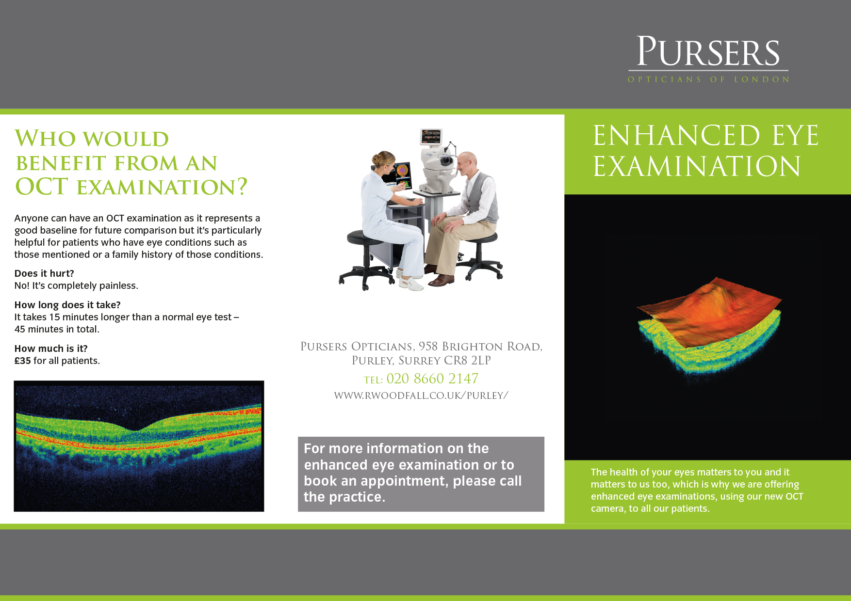 A4 folded to DL leaflet. R Woodfall is a small network of Opticians in South London. I designed and produced this leaflet when they installed a new OCT scanner, which allowed them to upgrade their vision-check services.