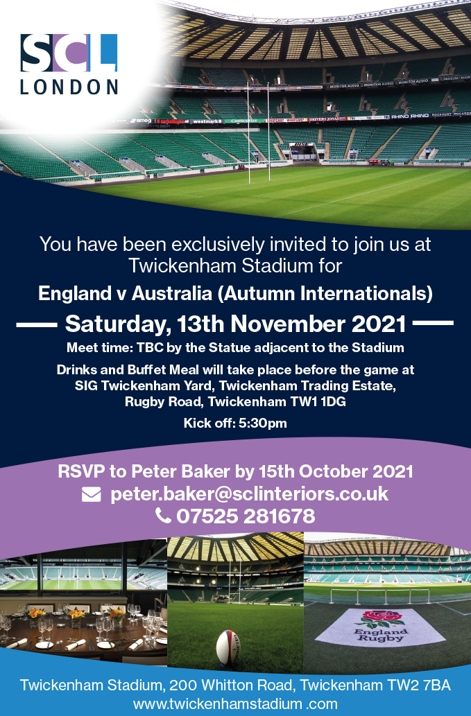 Client Invitations - for email delivery. SCL Interiors is a full service company providing interior infrastructure for the construction industry. They organise a series of events through the year to entertain their clients, which need to be delivered as a JPEG attachment via email.